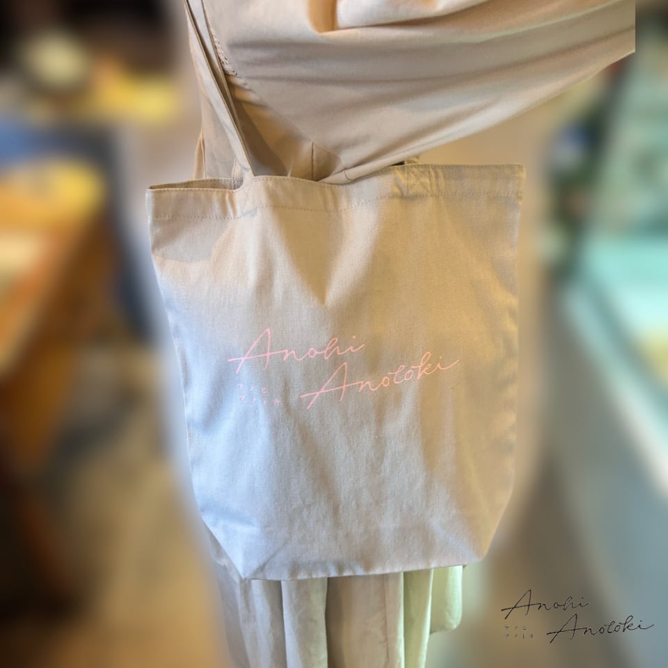 アノヒアノトキのオリジナルロゴ入りトートバッグ。