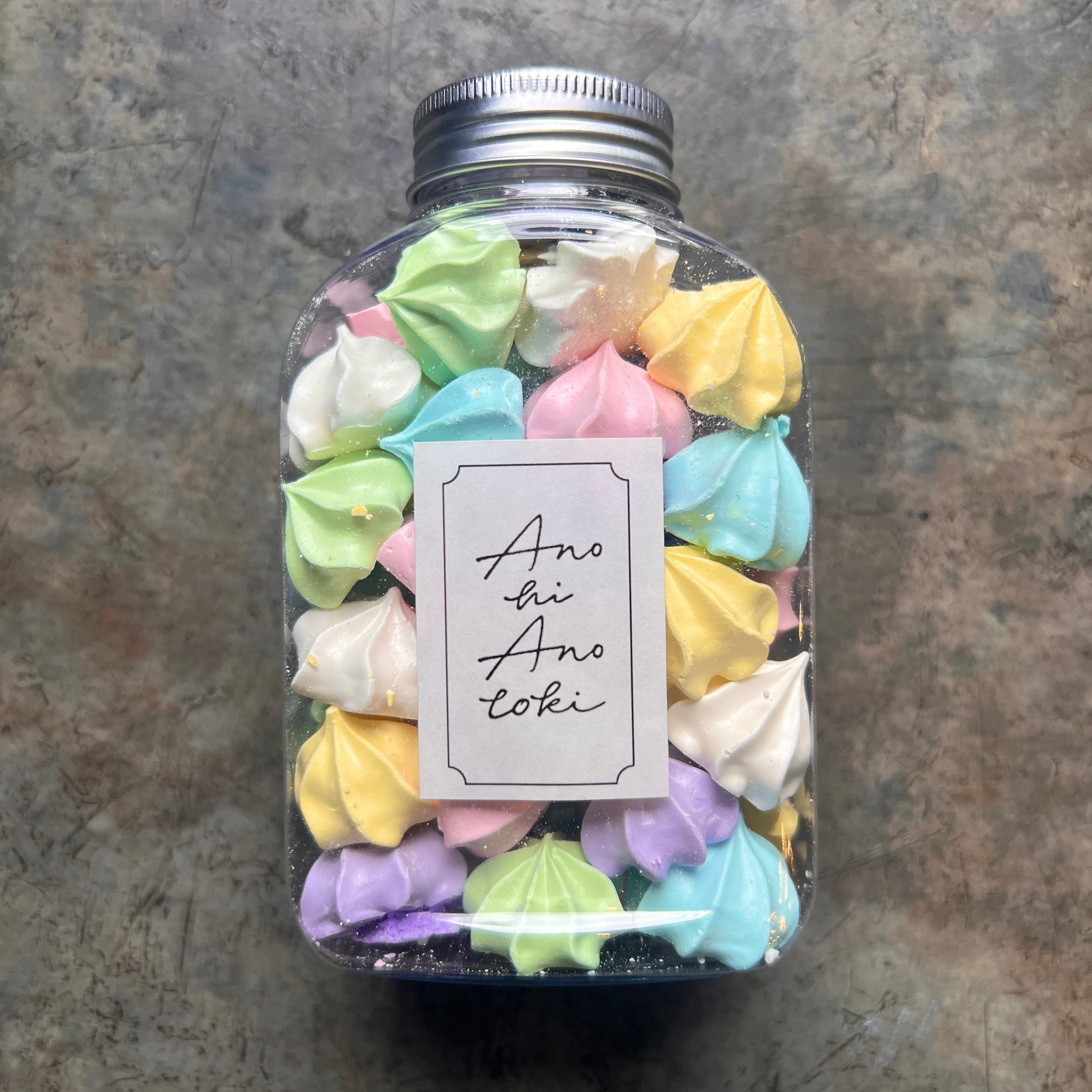 カラフルな色が目を引き、お子様から大人まで楽しめるメレンゲクッキーがギュッと詰まっています
